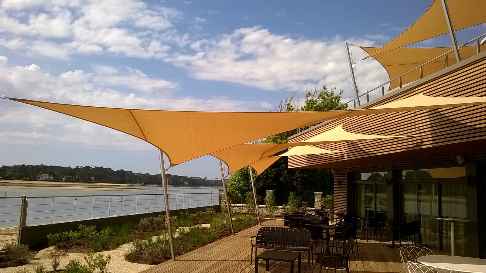 voile d'ombrage à hossegor dans les Landes en toile commercial 95 couleur desert sand